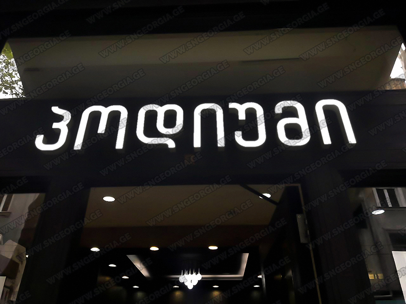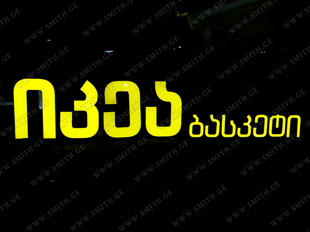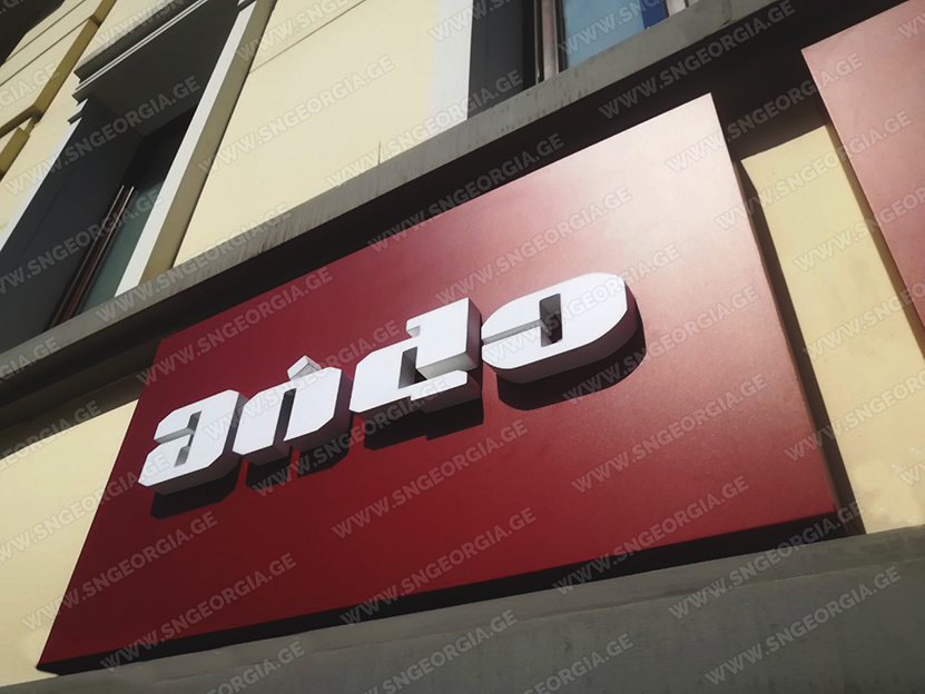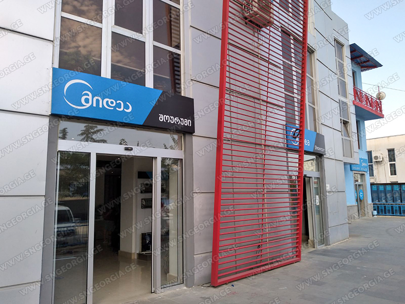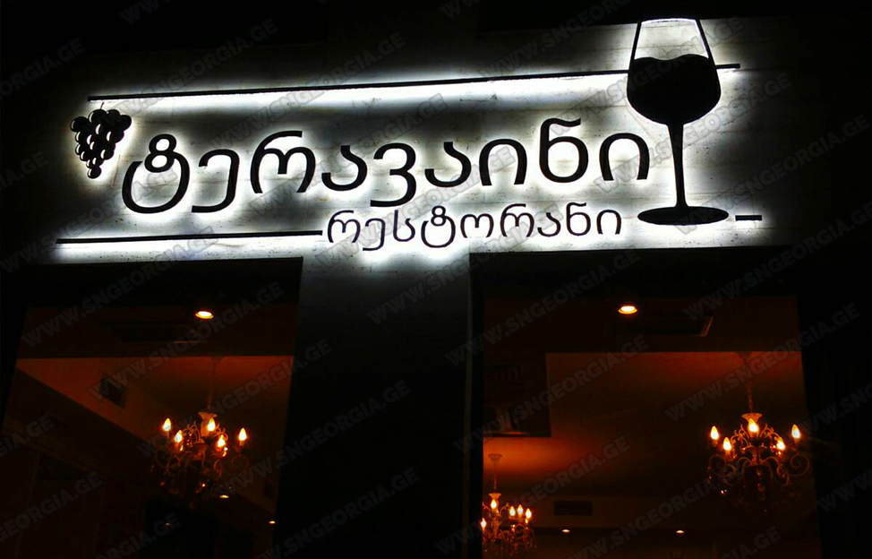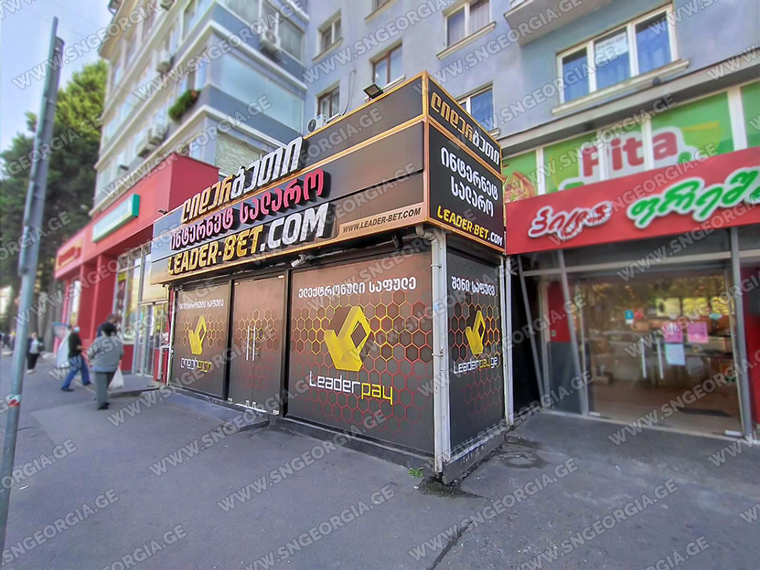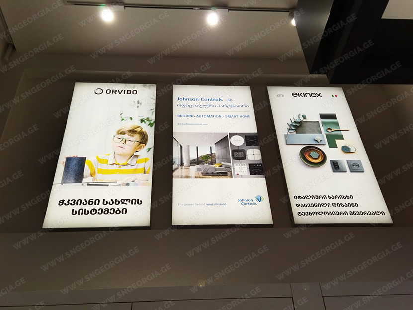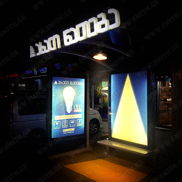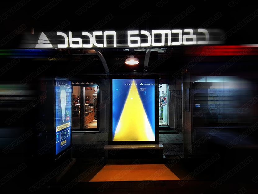 • შიდა და გარე აბრებს, მანათობელ ყუთებს;