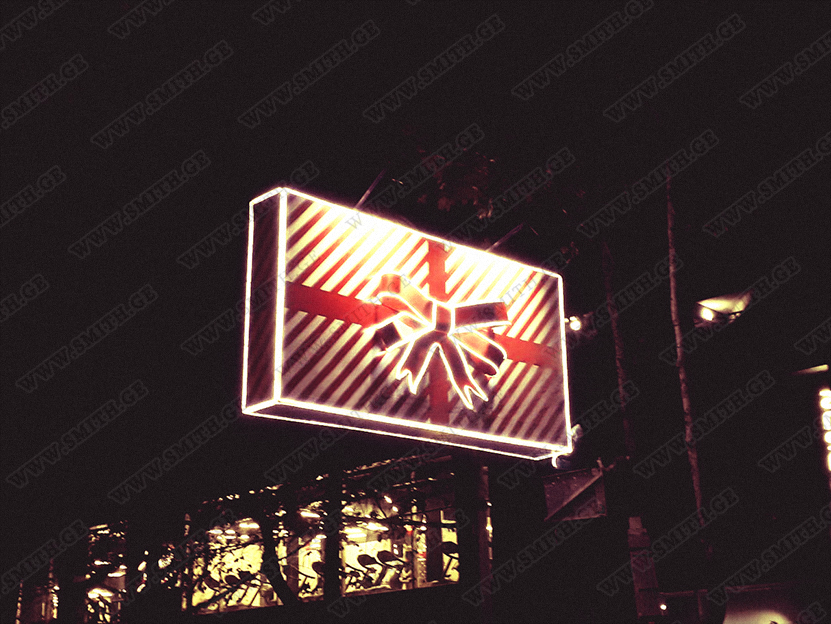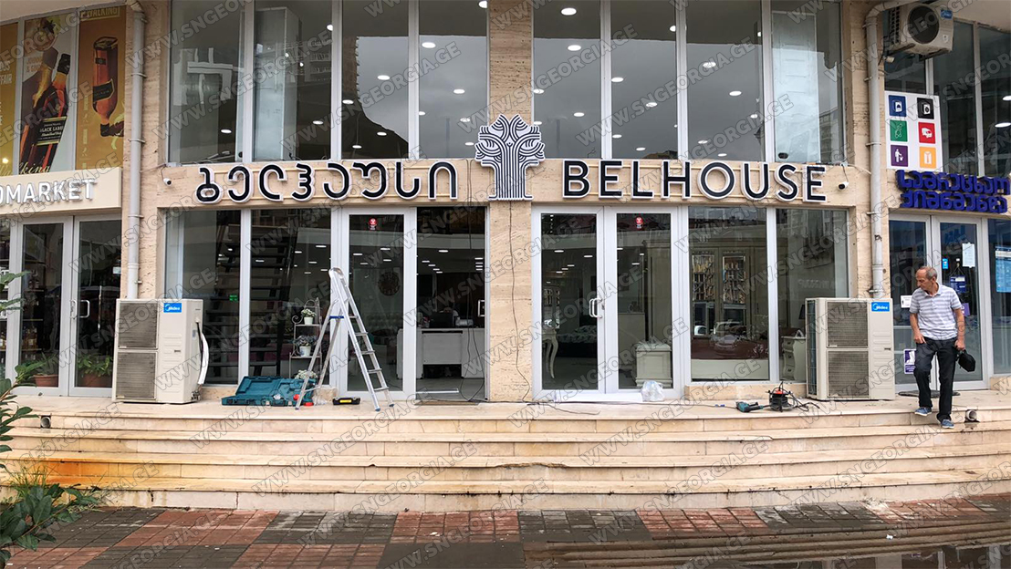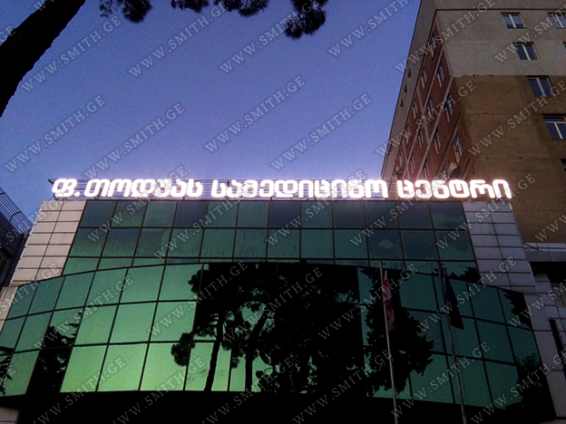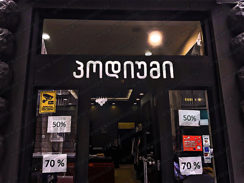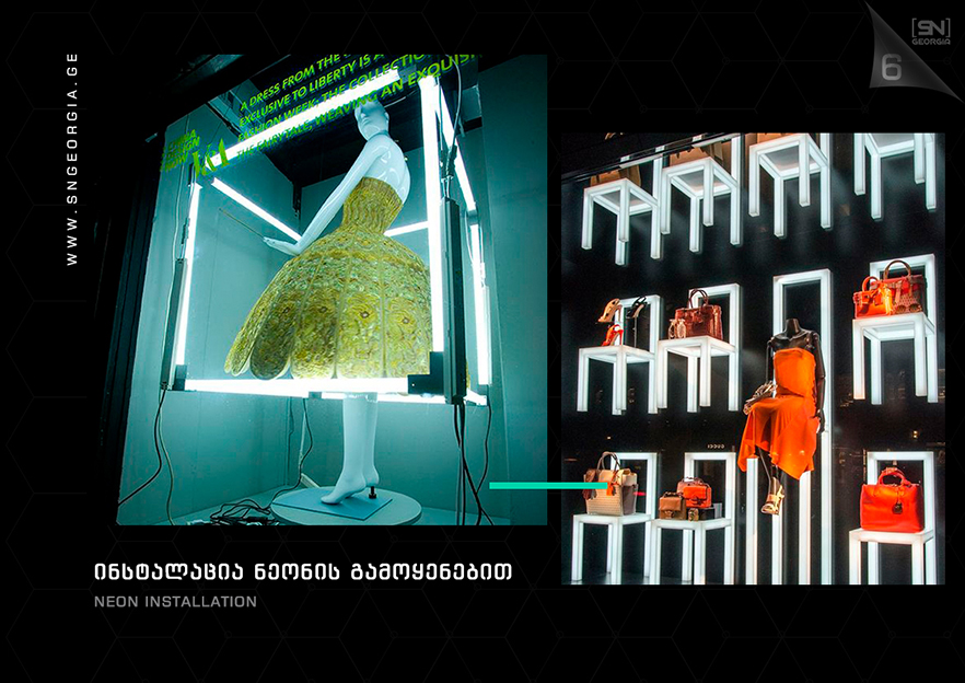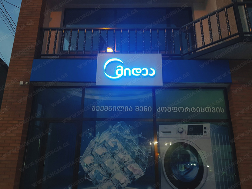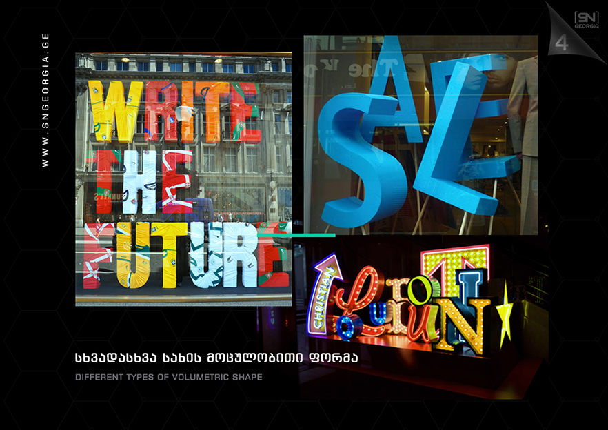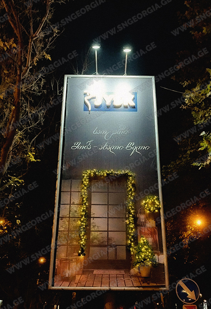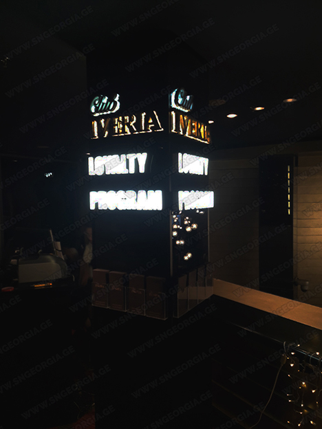 • შიდა და გარე აბრებს, მანათობელ ყუთებს;