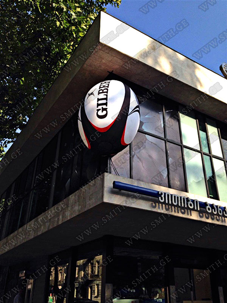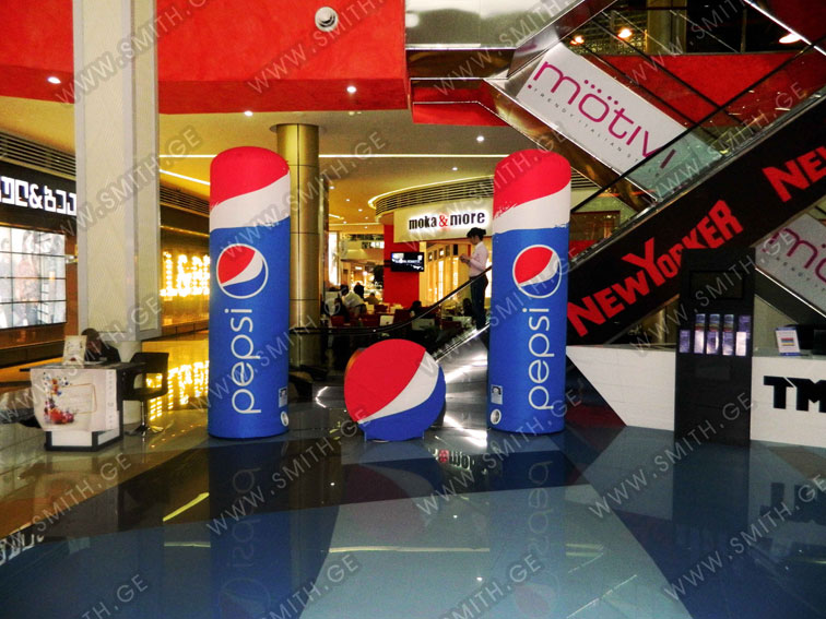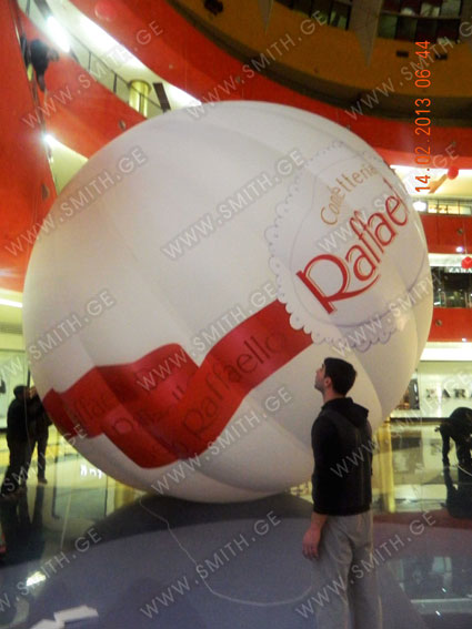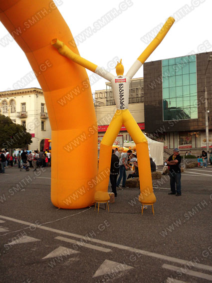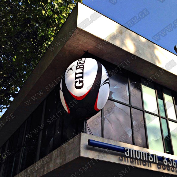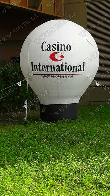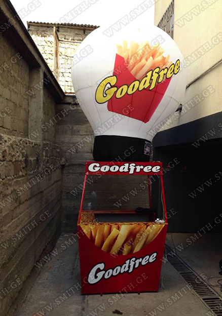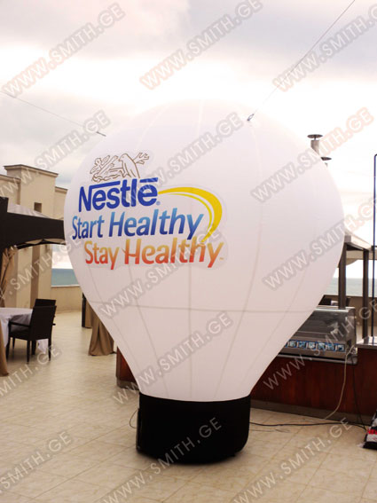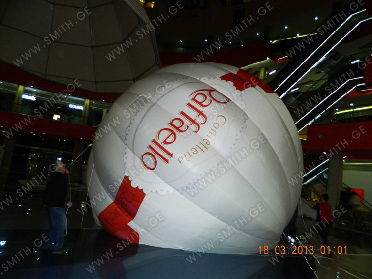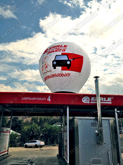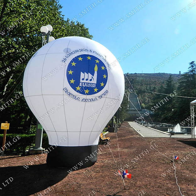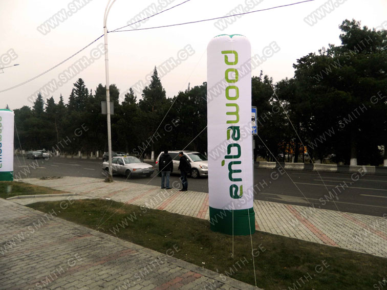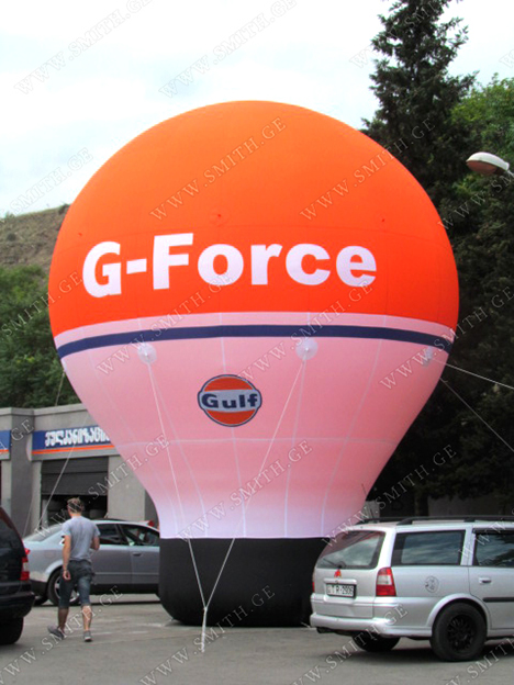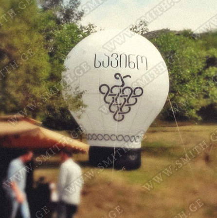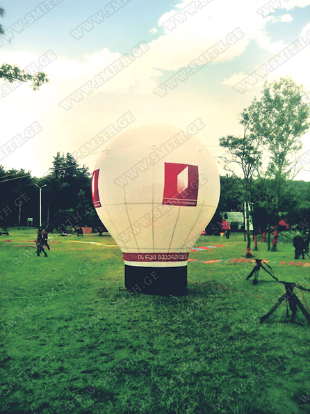 (ბურთებს, ბოძებს, აერომენებს, თაღებს, მასკოტებს, პროდუქტების გასაბერ ასლებს და ა.შ.);