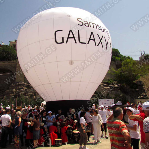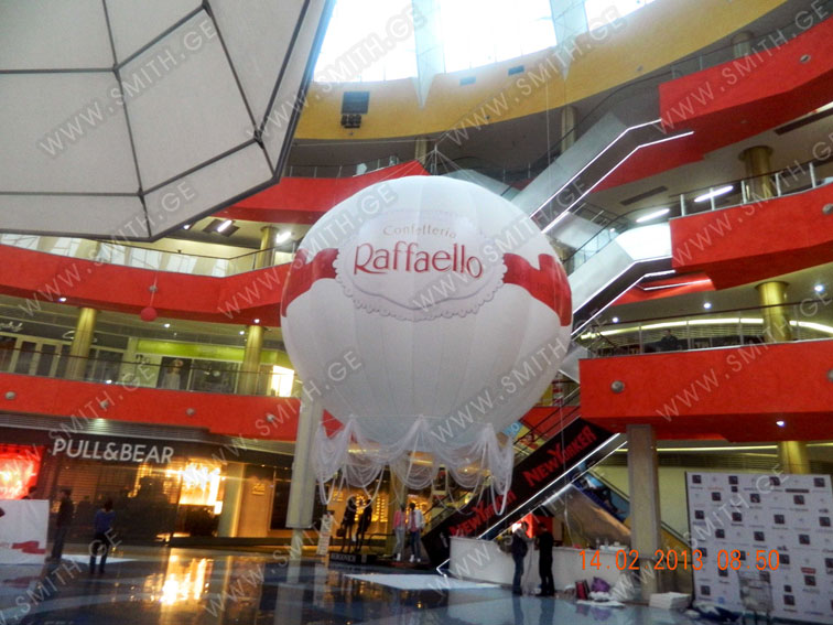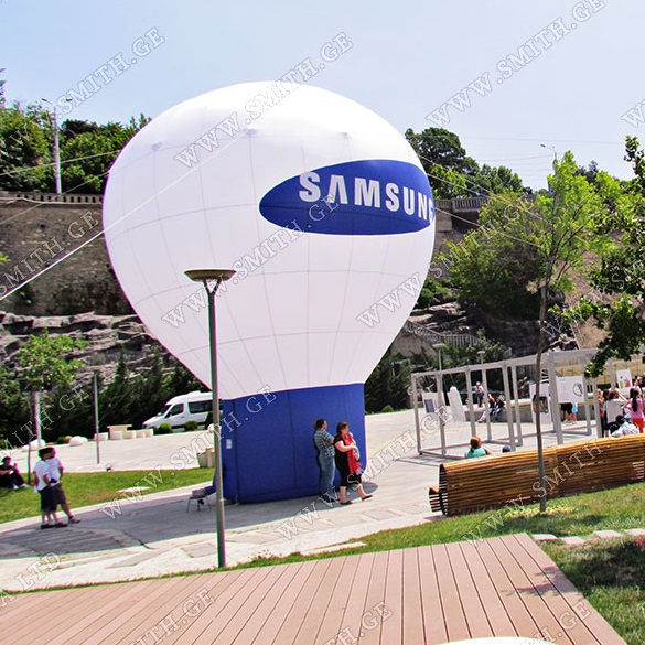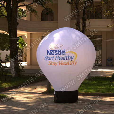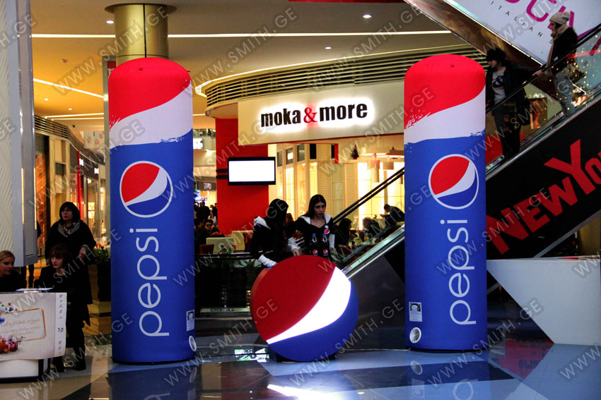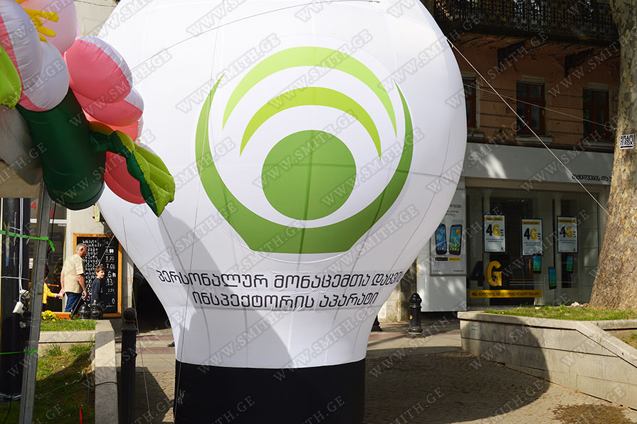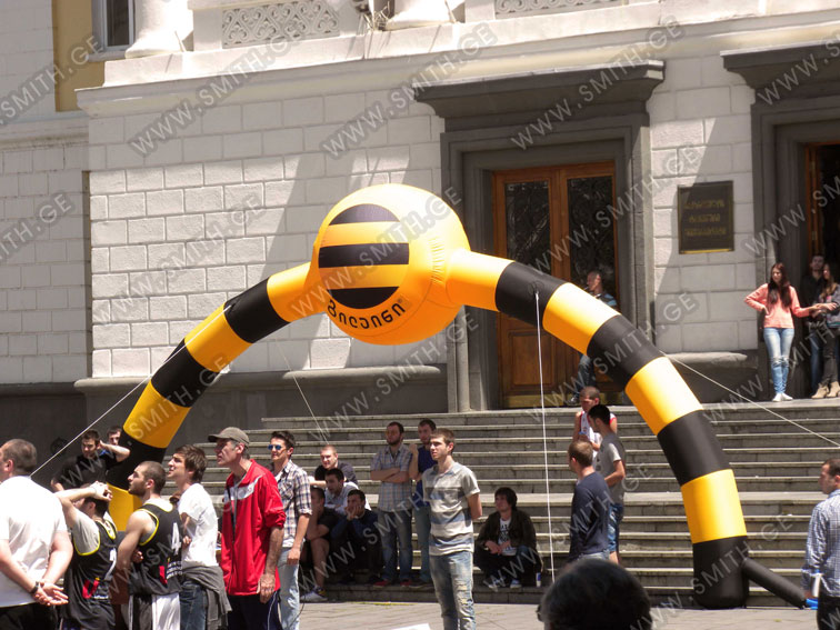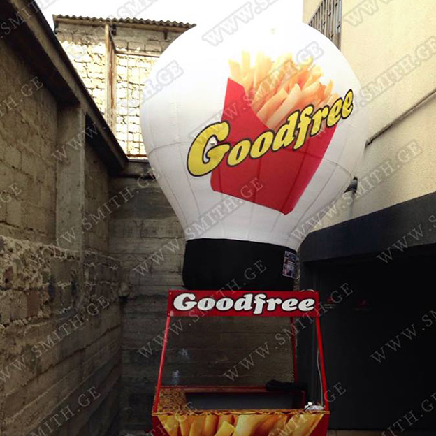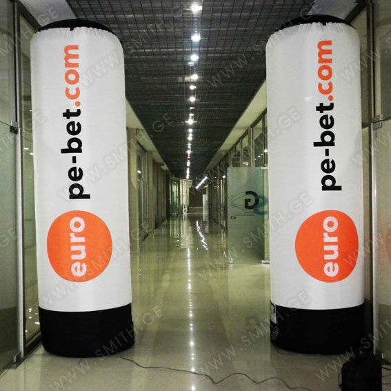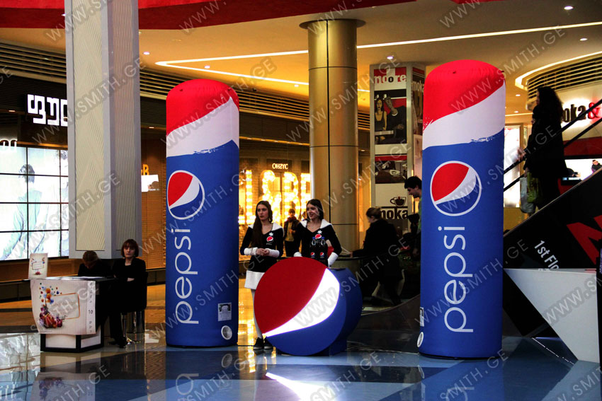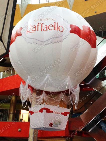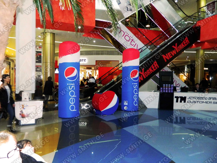 (ბურთებს, ბოძებს, აერომენებს, თაღებს, მასკოტებს, პროდუქტების გასაბერ ასლებს და ა.შ.);