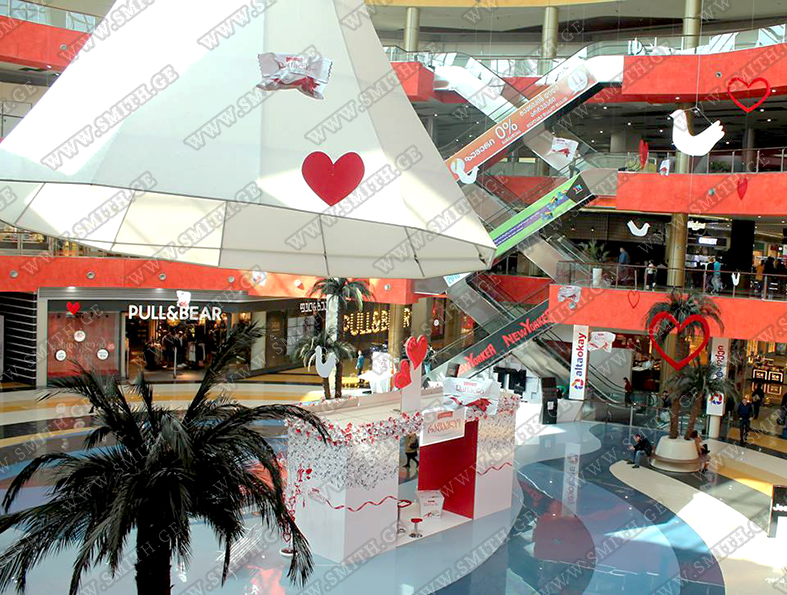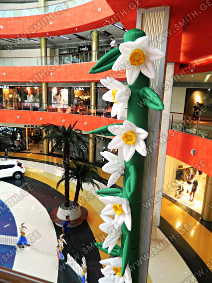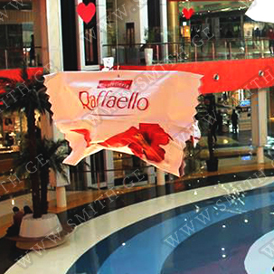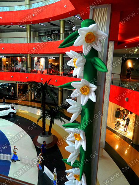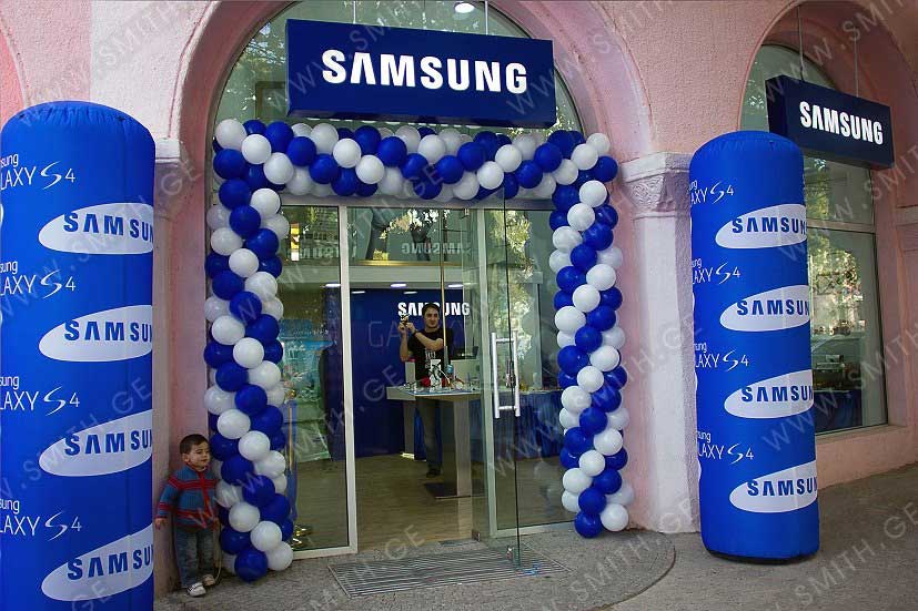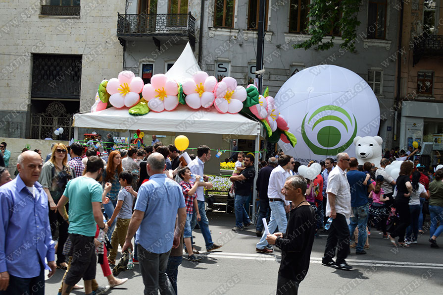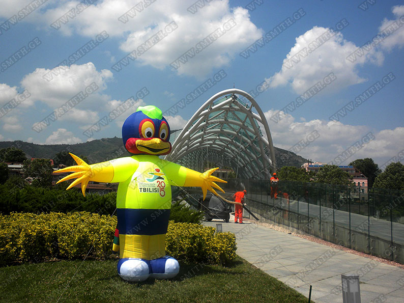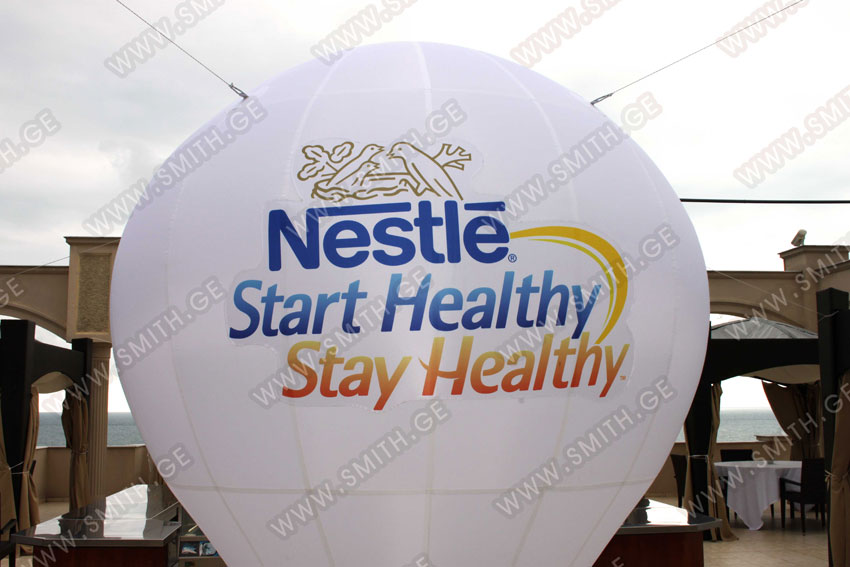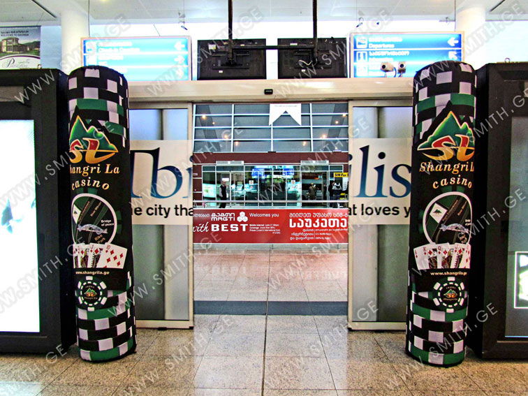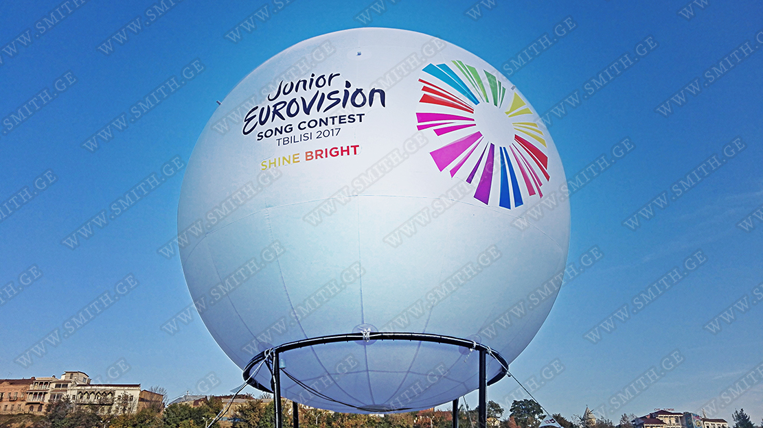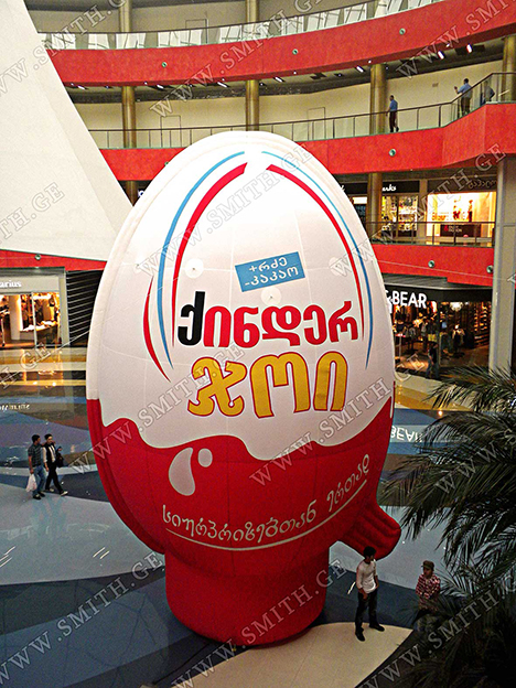 (ბურთებს, ბოძებს, აერომენებს, თაღებს, მასკოტებს, პროდუქტების გასაბერ ასლებს და ა.შ.);